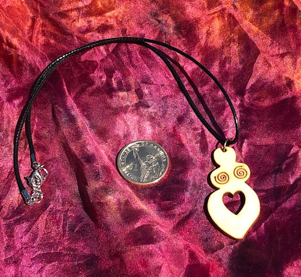 Divine Feminine energy abounds in sweet curves, spirals, and a cutout heart. Back is iridescent copper.